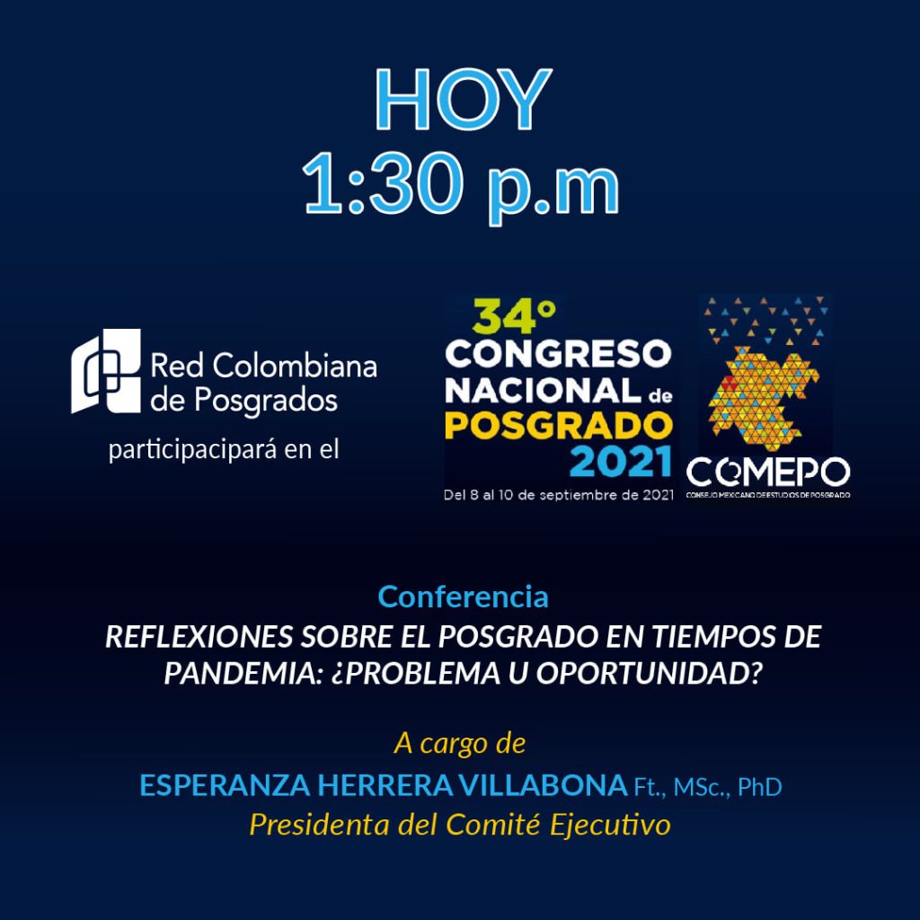 Del 8 al 10 de Septiembre, la Red Colombiana de Posgrados participará en el 34° Congreso Nacional de Posgrado 2021
